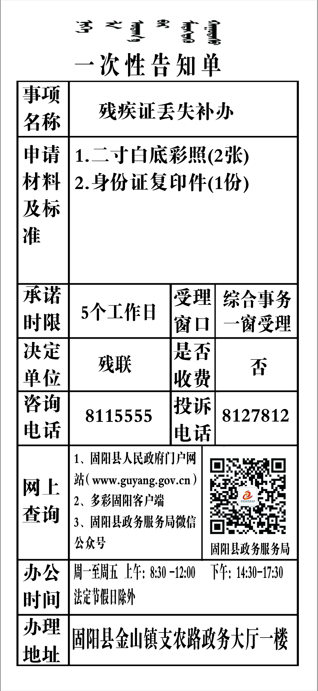 政务服务事项告知单