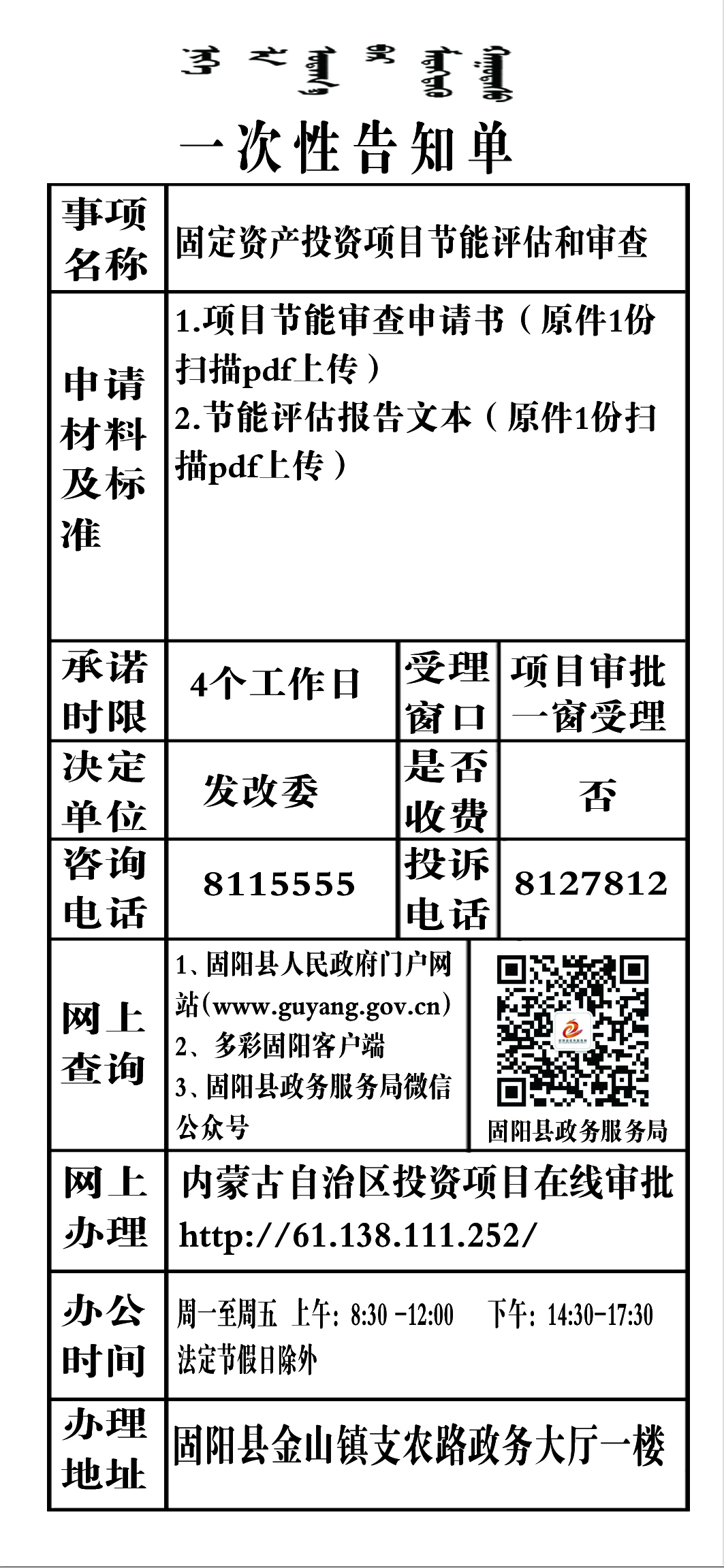 政务服务事项告知单