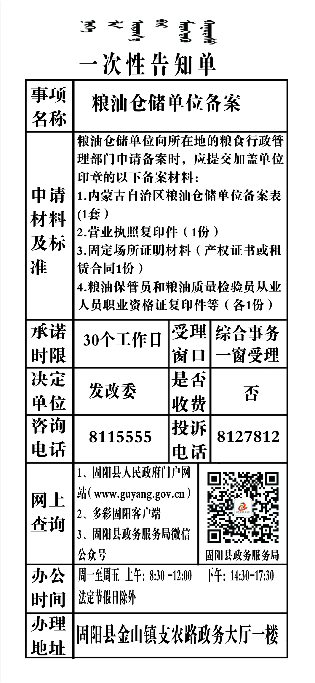 粮食仓储单位备案