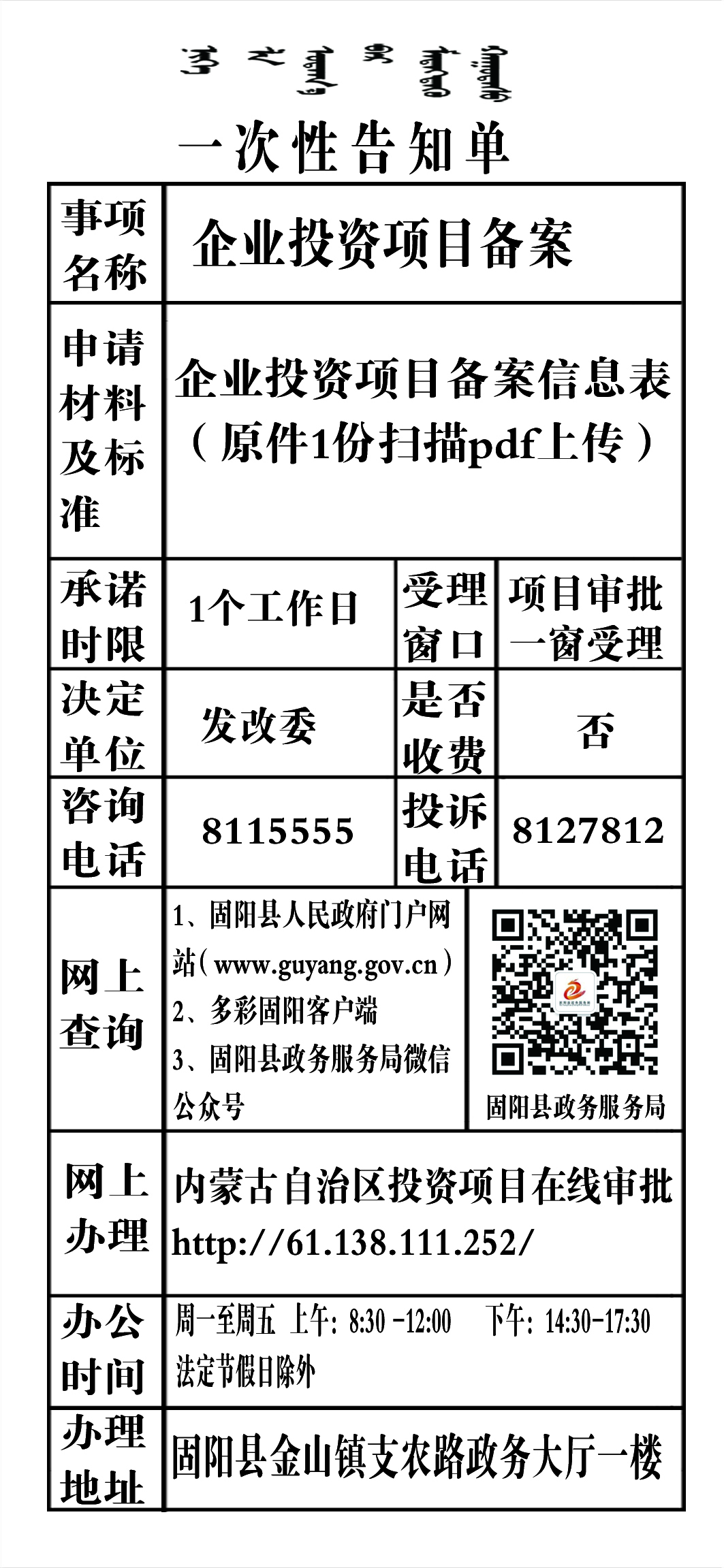 政务服务事项告知单