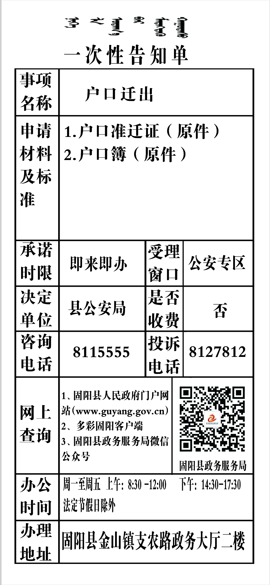 政务服务事项告知单