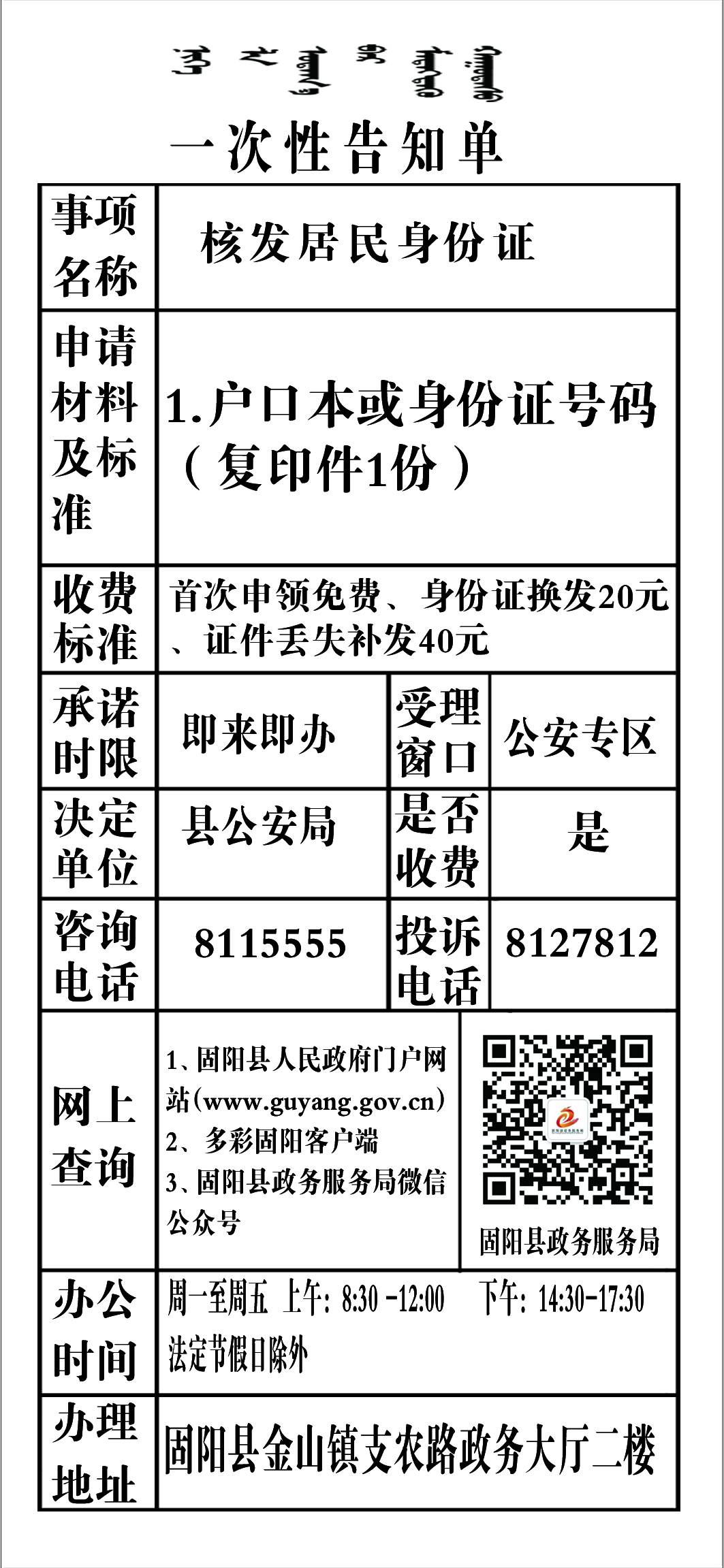 政务服务事项告知单