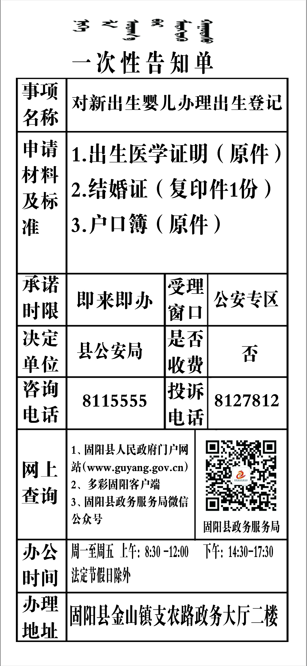 政务服务事项告知单