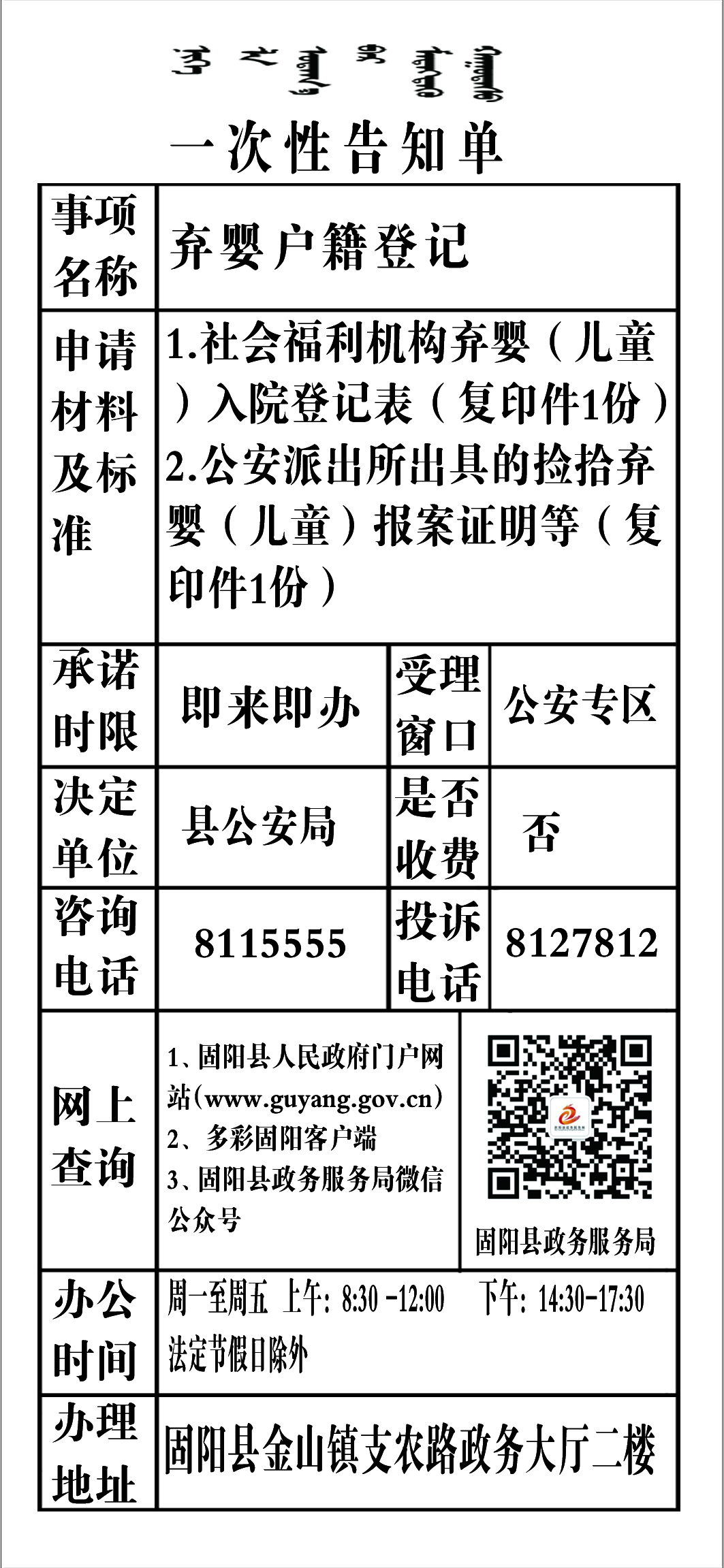 政务服务事项告知单