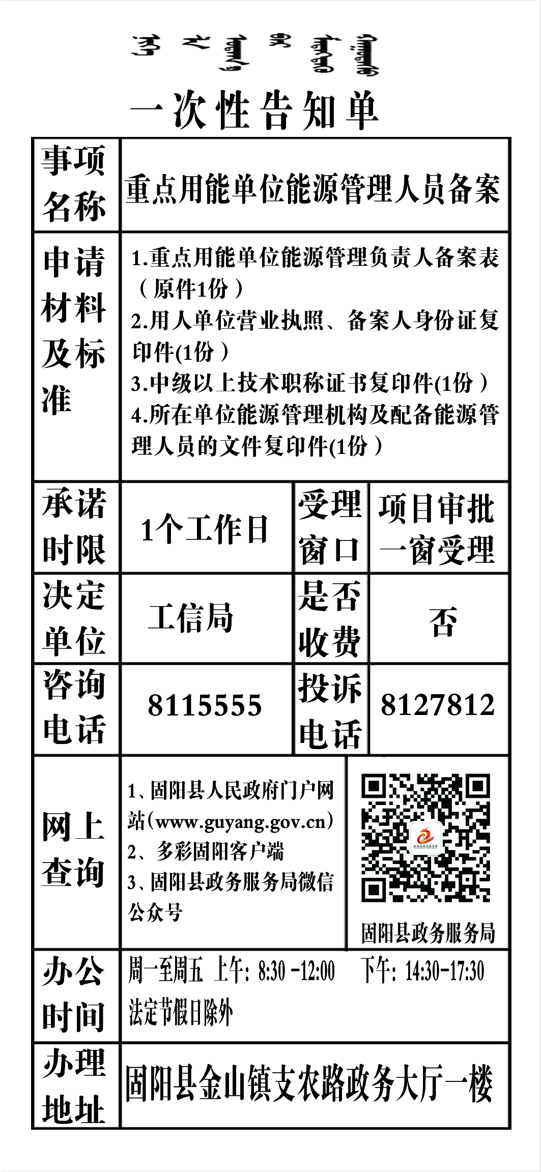 政务服务事项告知单