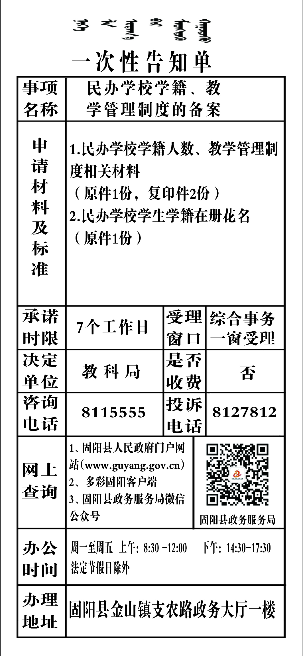 政务服务事项告知单