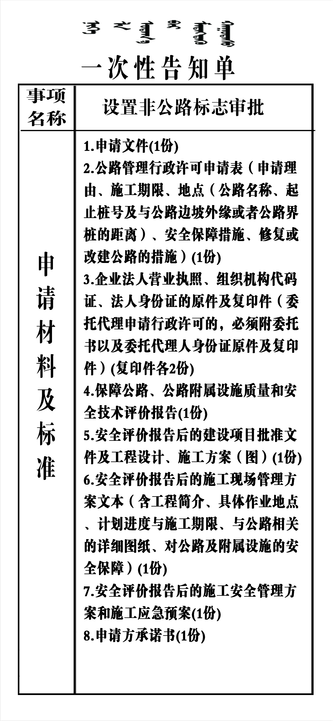设置非公路标志审批