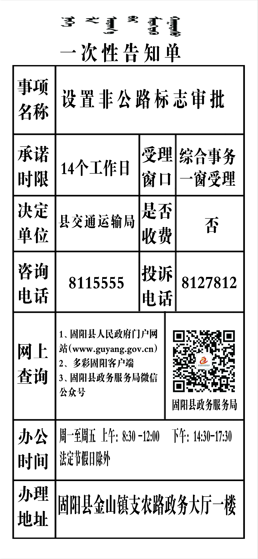政务服务事项告知单