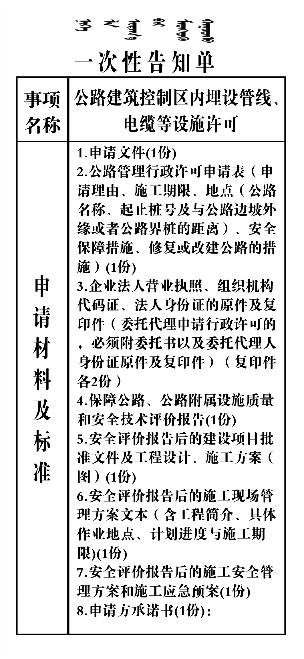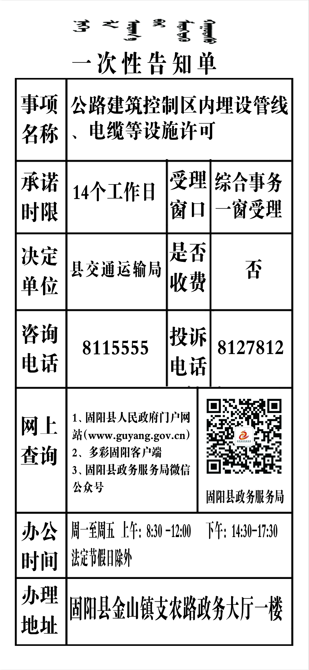 政务服务事项告知单