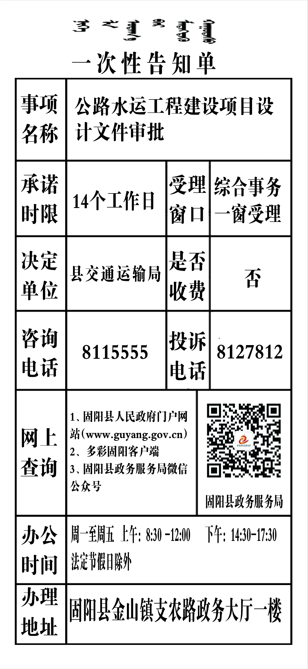 政务服务事项告知单