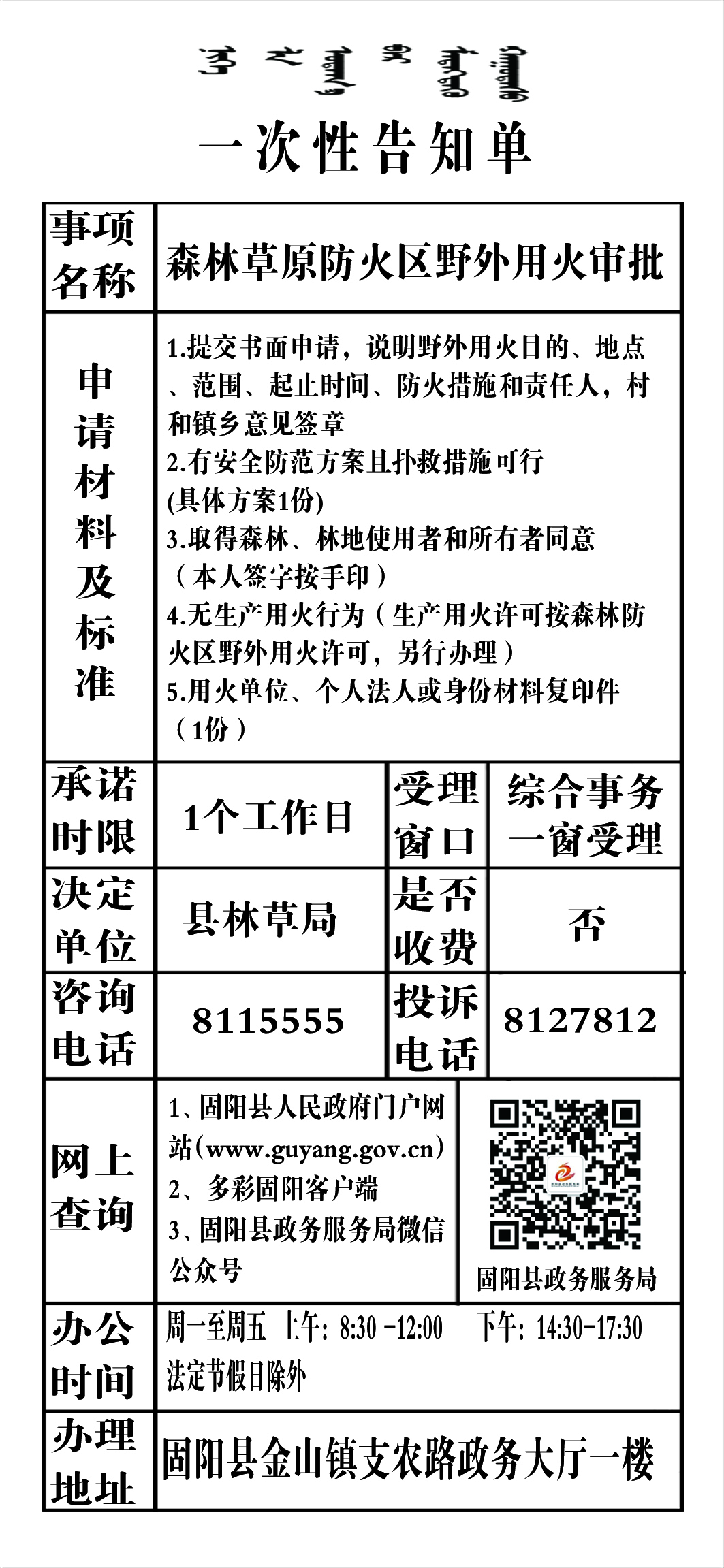 政务服务事项告知单