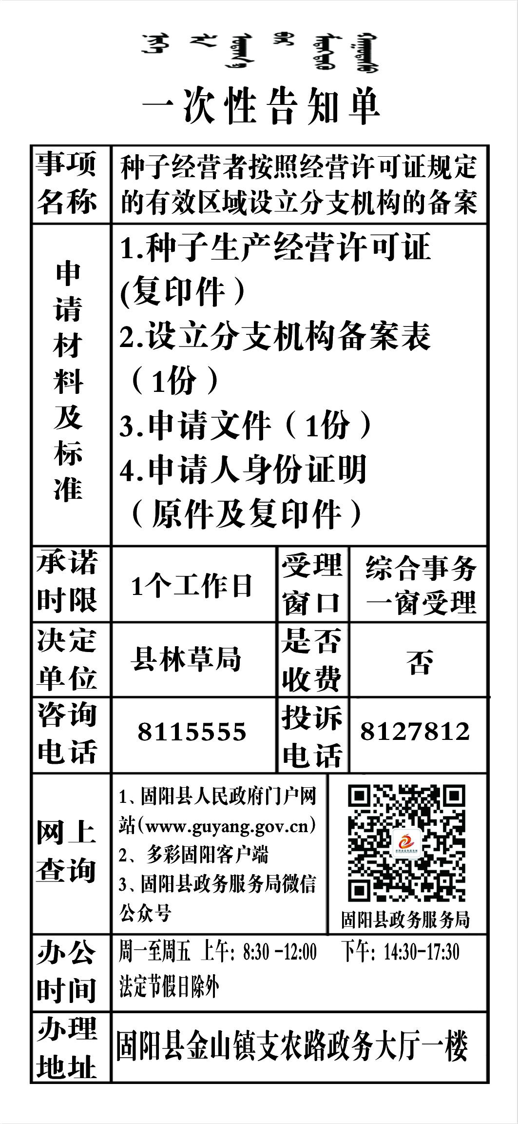 种子经营者按照经营许可证规定的有效区域设立分支机构的备案