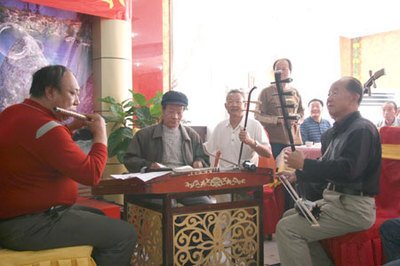 打坐腔是一种独有的民间艺术表演形式 。"打"就是"表演"的意思,顾名思义,"坐腔"就是坐在那的唱腔。固阳的农村,一到逢年过节,农闲季节或有闲暇时间,几个"戏迷"就聚在一起,"你拉胡胡(胡琴)额(我)哨枚(吹笛子),咱俩逗一段二流水(曲牌名)。