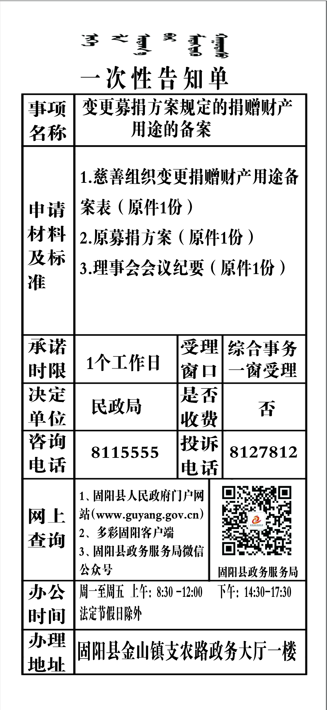 政务服务事项告知单
