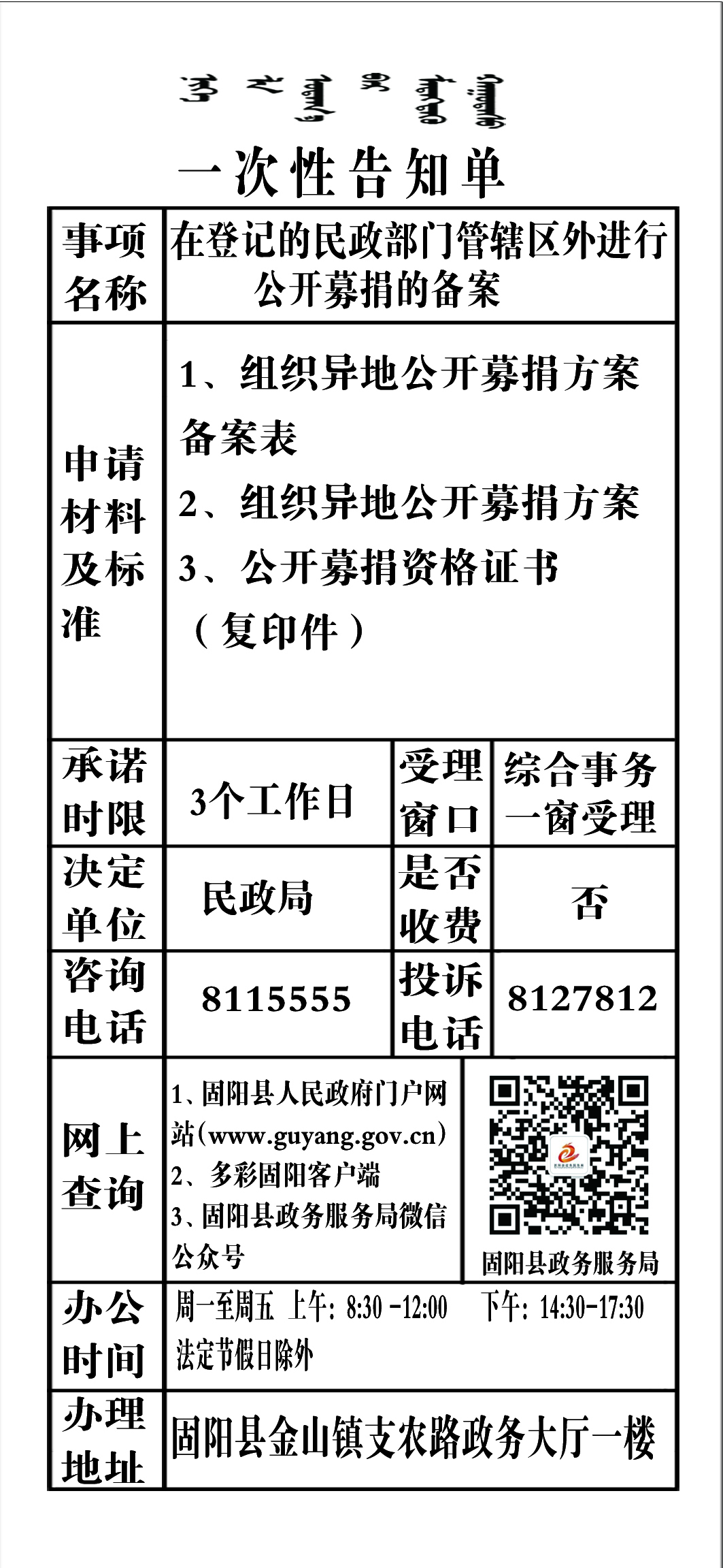 政务服务事项告知单