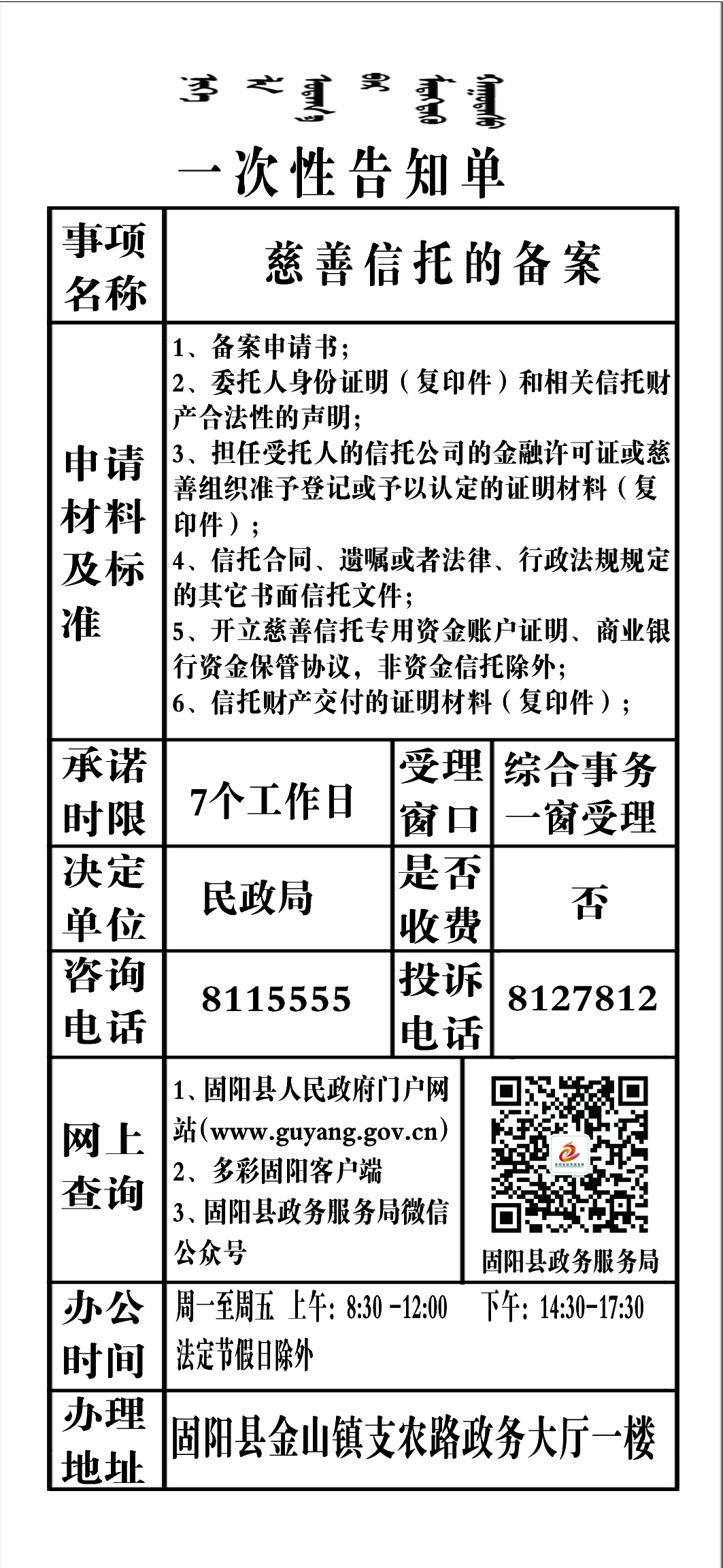 政务服务事项告知单