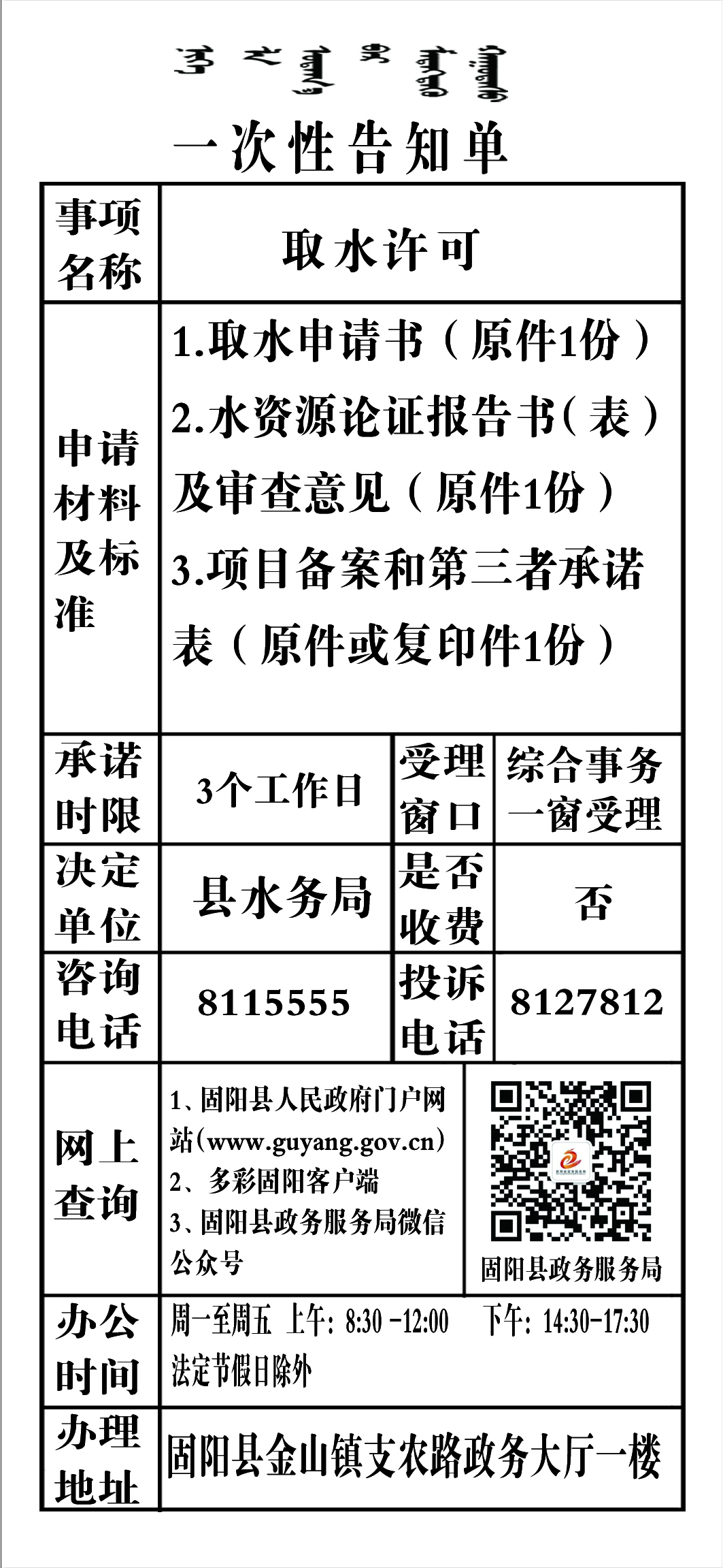 政务服务事项告知单