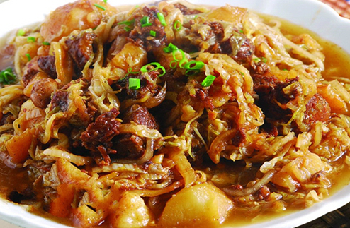 固阳人爱吃土豆,可以算是饮食中的一大特色。吃法多样,以土豆莜面为组合,或者是土豆烩菜就着馍馍吃。