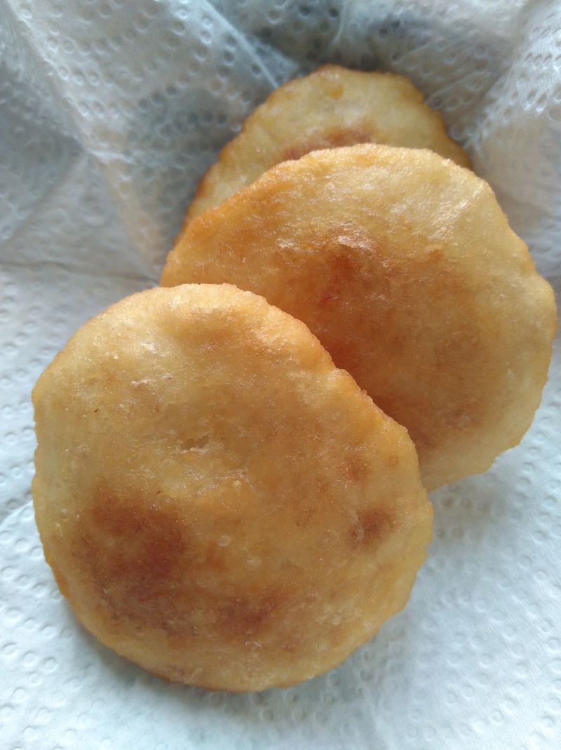 油糕是用黄米面做的,黄米是从一种叫做黍子的禾本科农作物来的,只有好黍子才能推出好黄米。黍子产量不高,其品质与产地有关,一般以前山即阴山以南的为最好。后山一般不种黍子,人们吃糕得换黄米,总是要打听前山的黄米,可能是原产地的缘故吧。一般说来,调黄米以1.2斤白面调换1斤黄米。有经验的人,抓起一小把黄米放在手里搓一搓看一看,再闻一闻甚至放几颗在嘴里尝一尝,是好是坏就能判断个八九不离十。好黄米颗粒饱满完整、色泽金黄,散着一股清香,做出来的油糕又黄又软又筋道。赖黄米口感很差,做出来的糕硬还不筋,嚼在嘴里像泥。做糕也有技术在里边。淘米、喷粉、拌面、蒸糕、揣糕、油炸,哪个环节做不好都会影响到糕的质量。糕要现炸现吃才好,黄蹭蹭软溜溜别具风味。