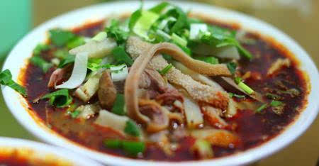 “杂碎三料”又分主料和副料,正宗的全羊杂碎之主料是心、肝、肺,下锅的时候切成碎丁或薄片;三副料是肠(生油的)、肚(生味的)、头蹄肉(架碗充数的),下锅时要切成细丝和长条。一碗羊杂碎,看的就是主副料全不全。