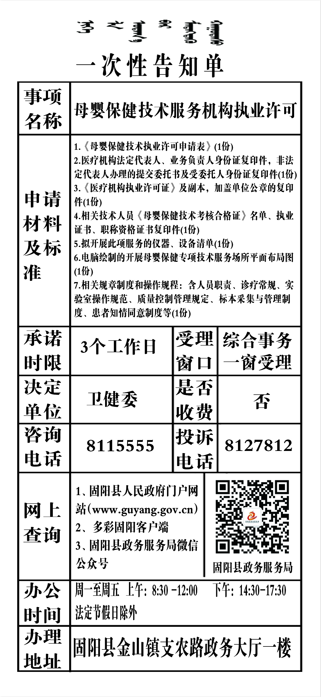 政务服务事项告知单