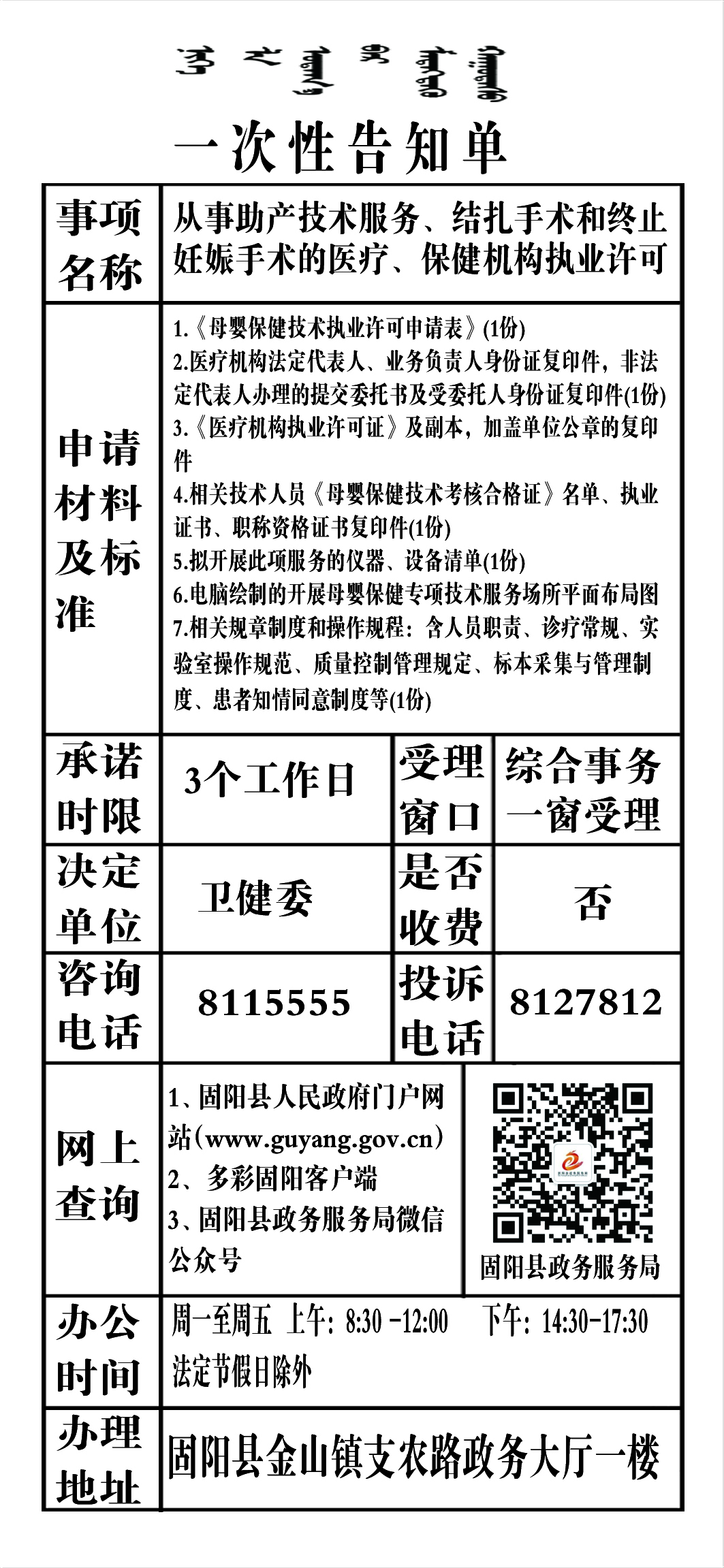 从事助产技术服务、结扎手术和终止妊娠手术的医疗、保健机构执业许可