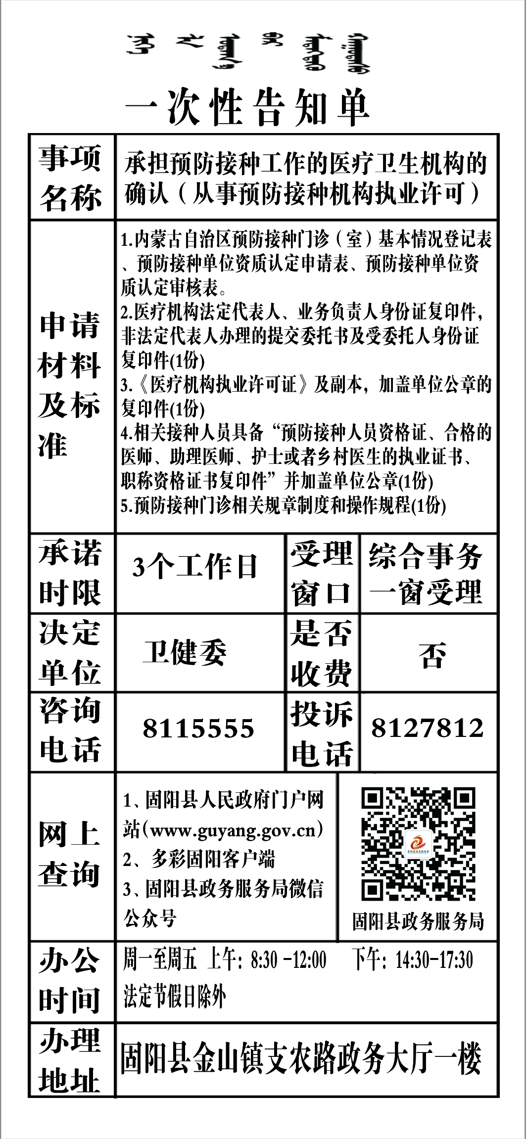 政务服务事项告知单