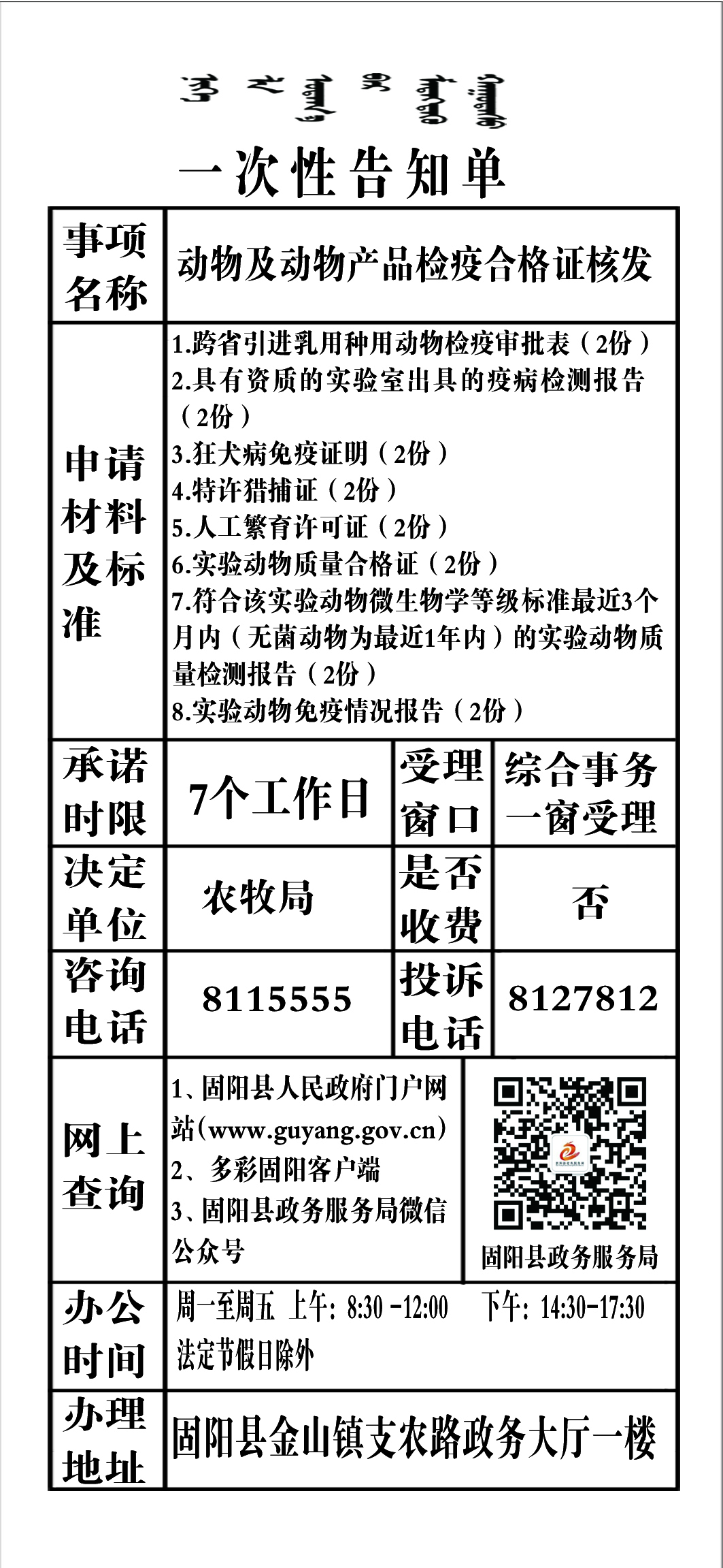 政务服务事项告知单