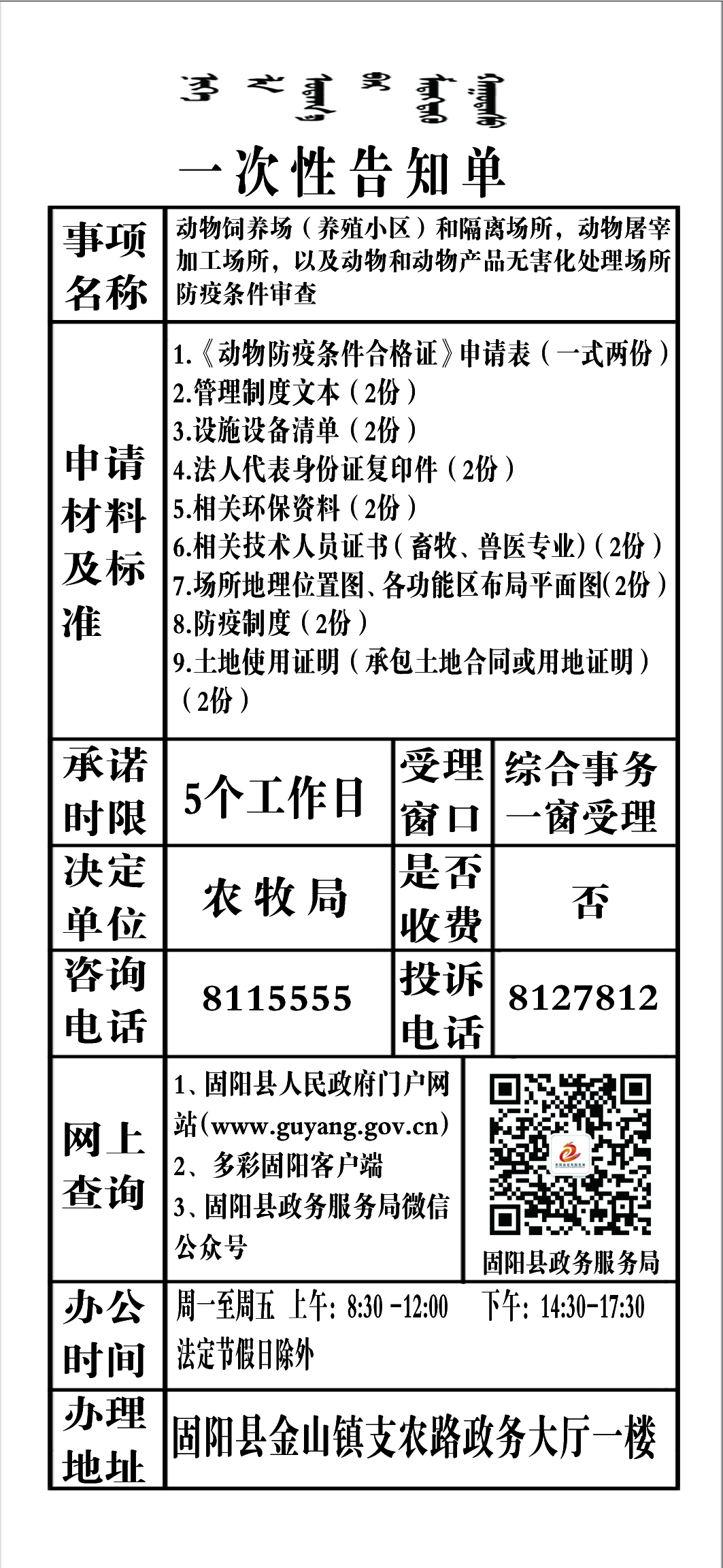 政务服务事项告知单