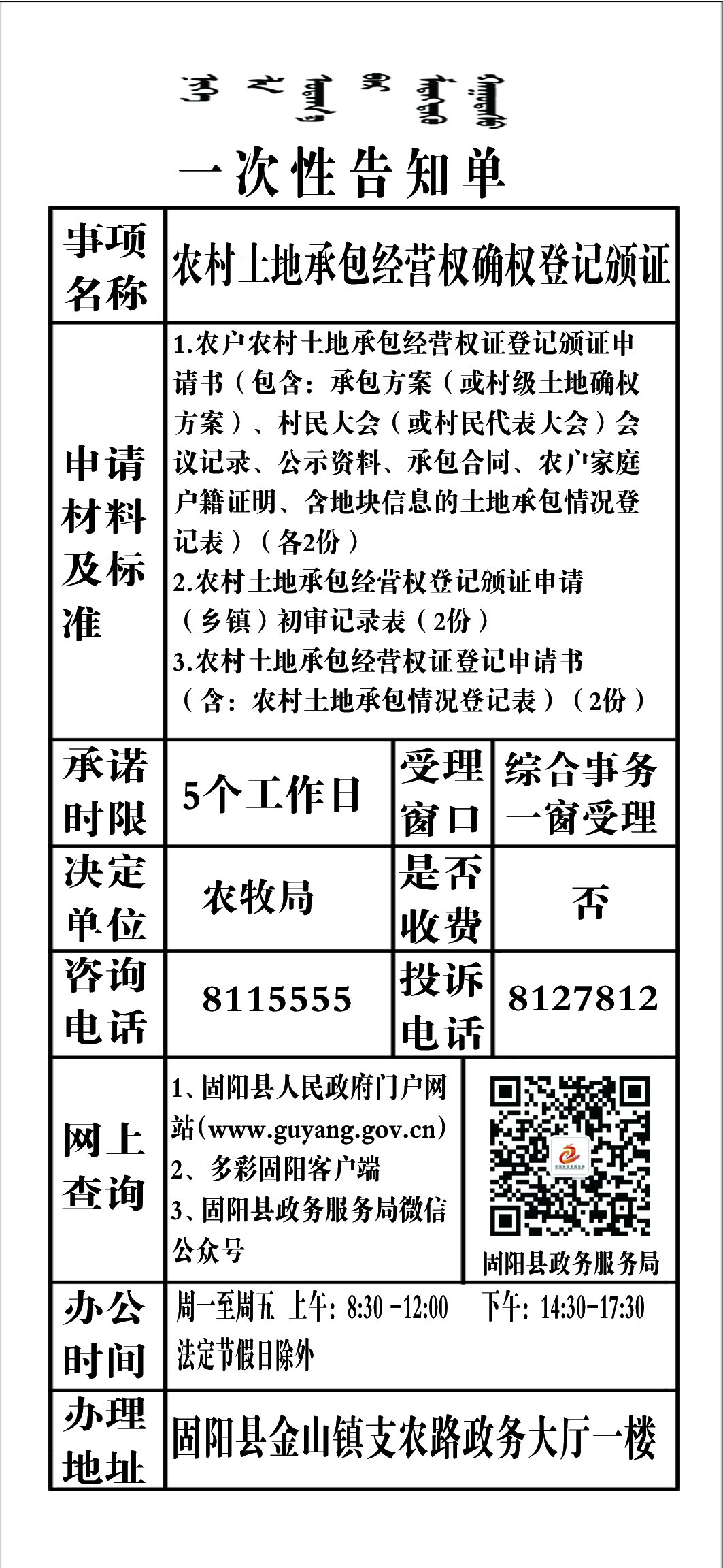 政务服务事项告知单