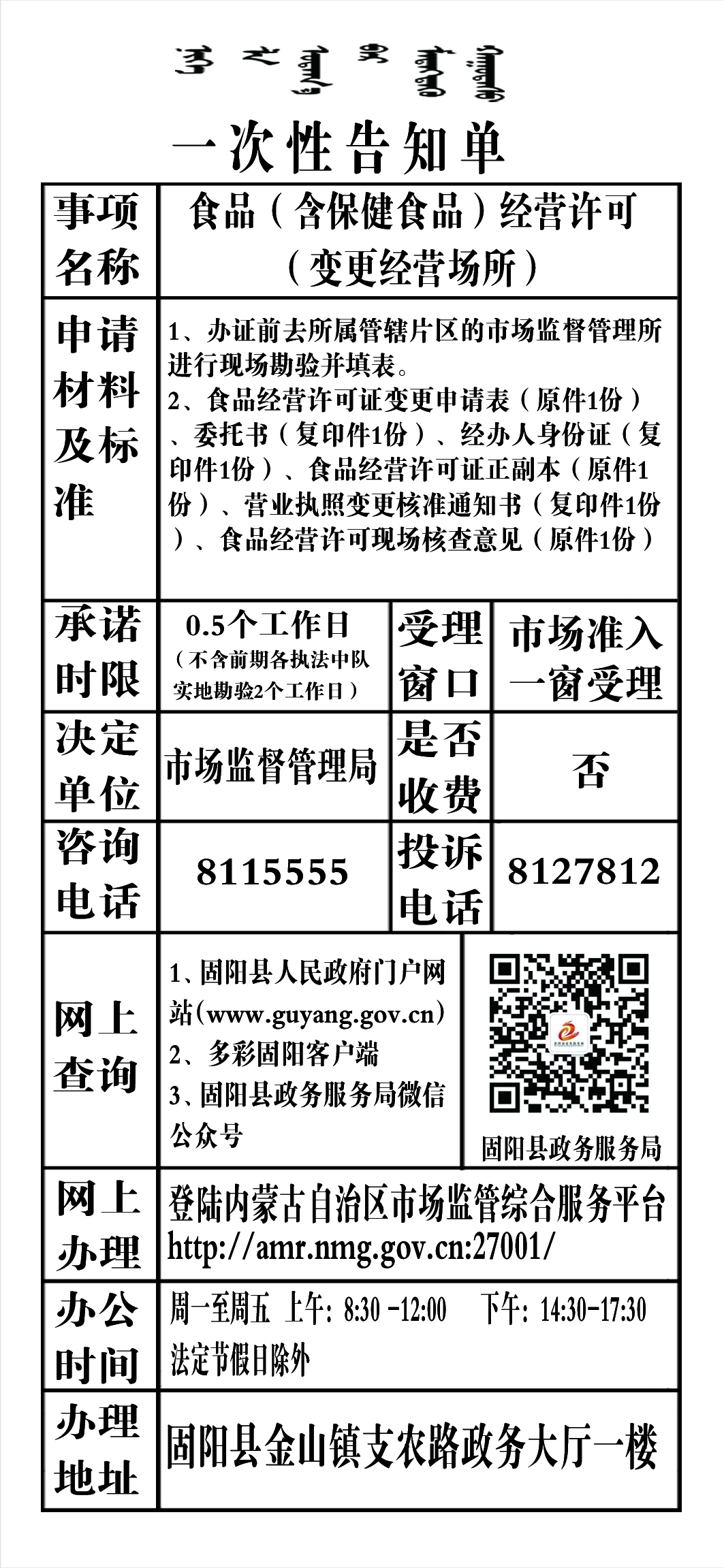 政务服务事项告知单