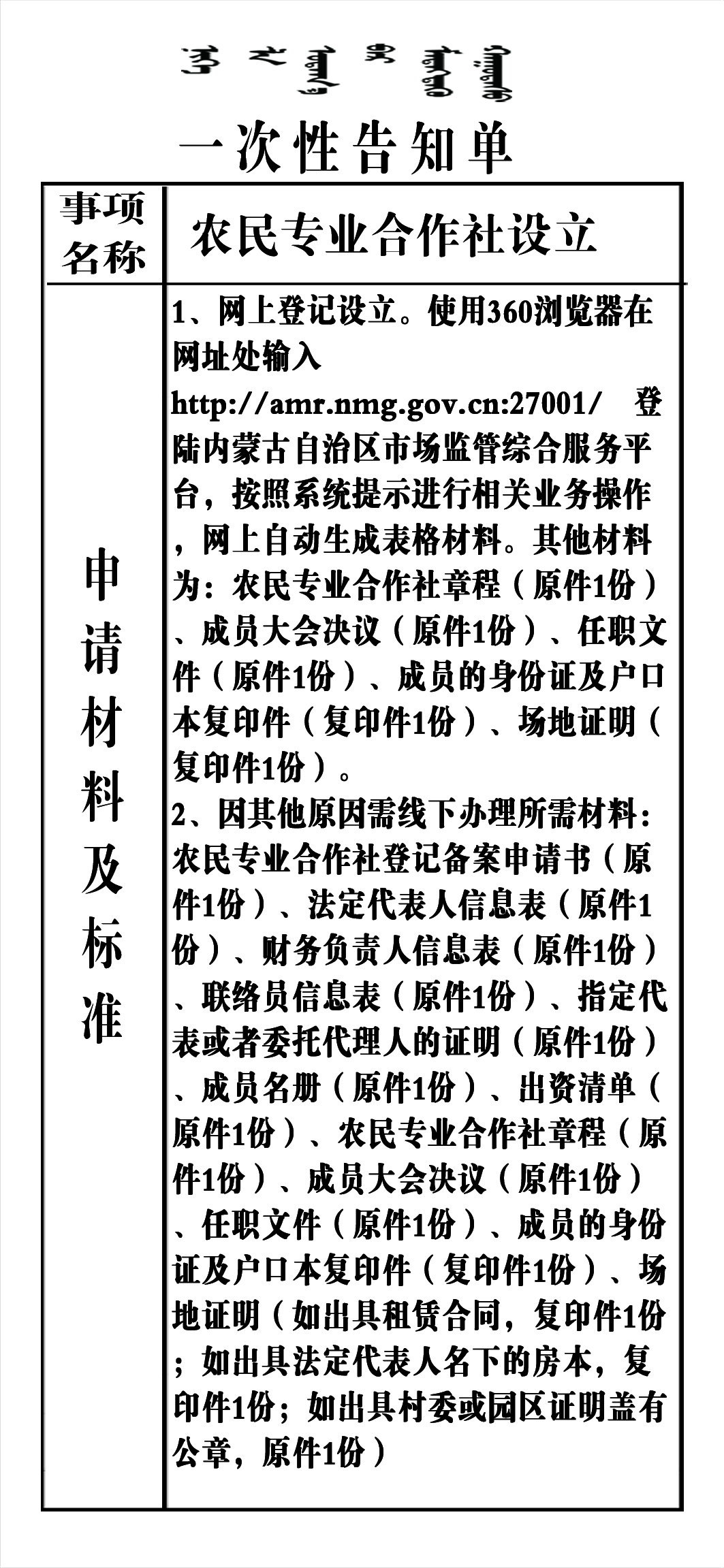 农民专业合作社设立