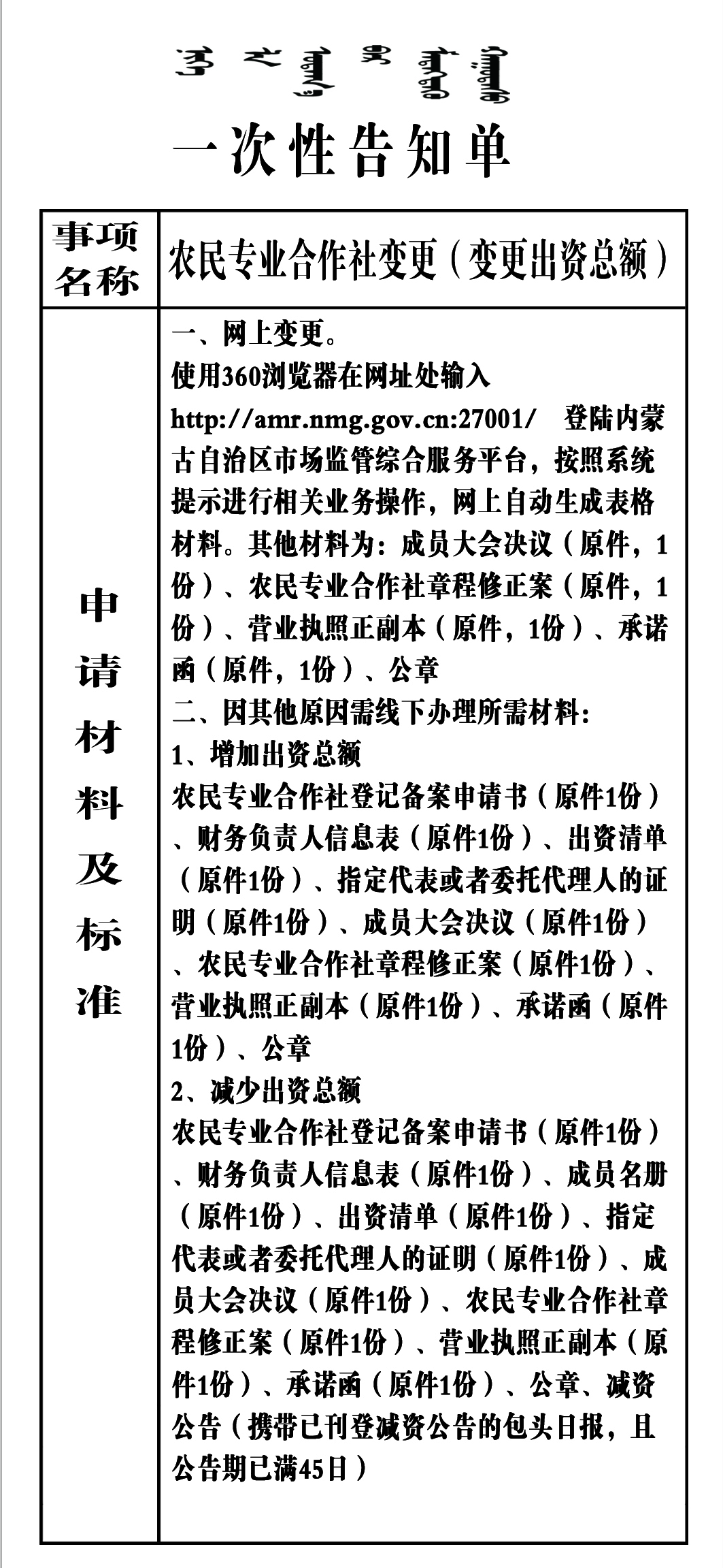 农民专业合作社变更(变更出资总额)
