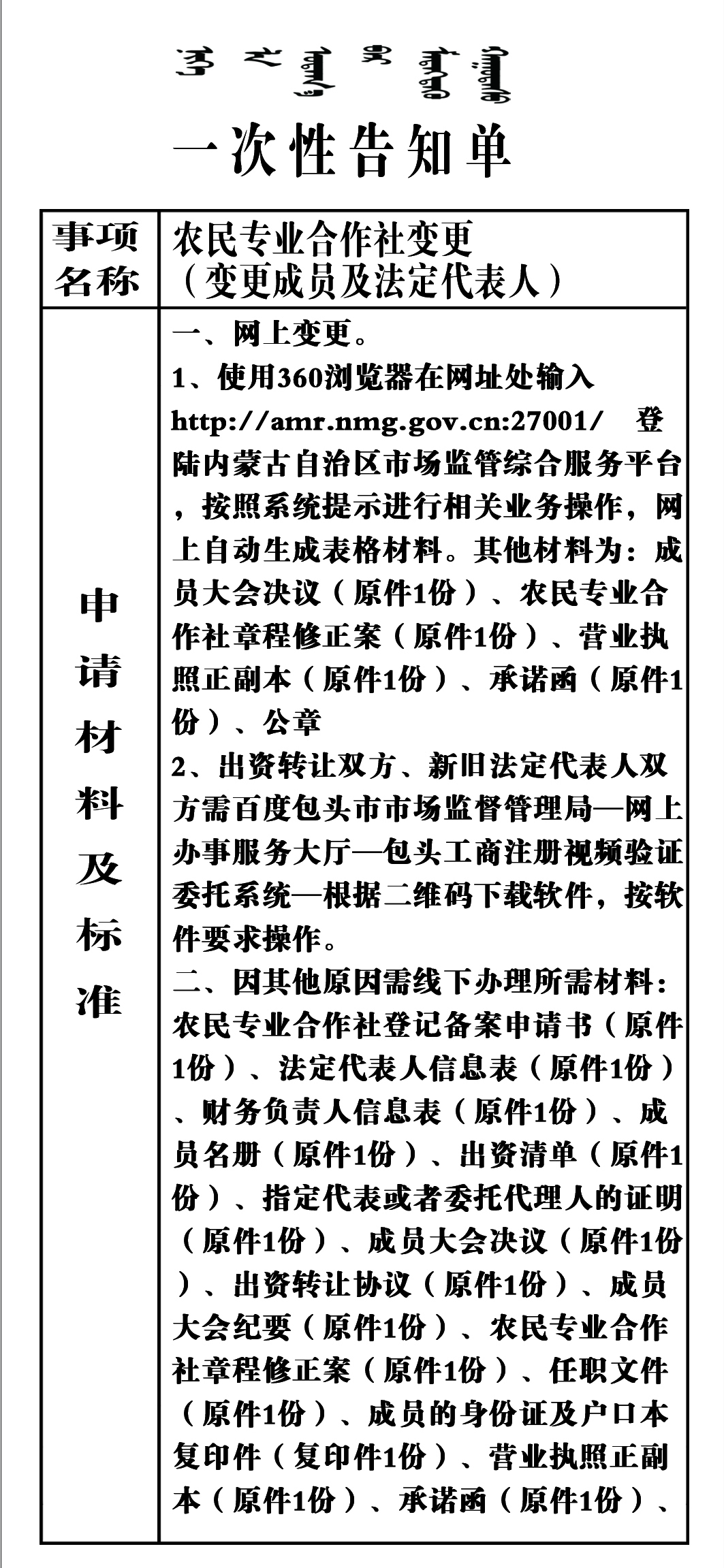 农民专业合作社变更(变更成员及法定代表人