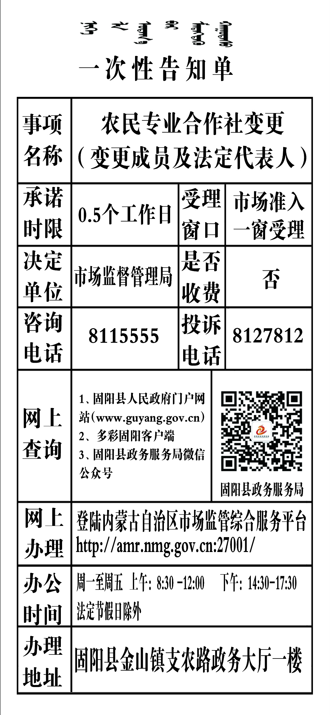 政务服务事项告知单