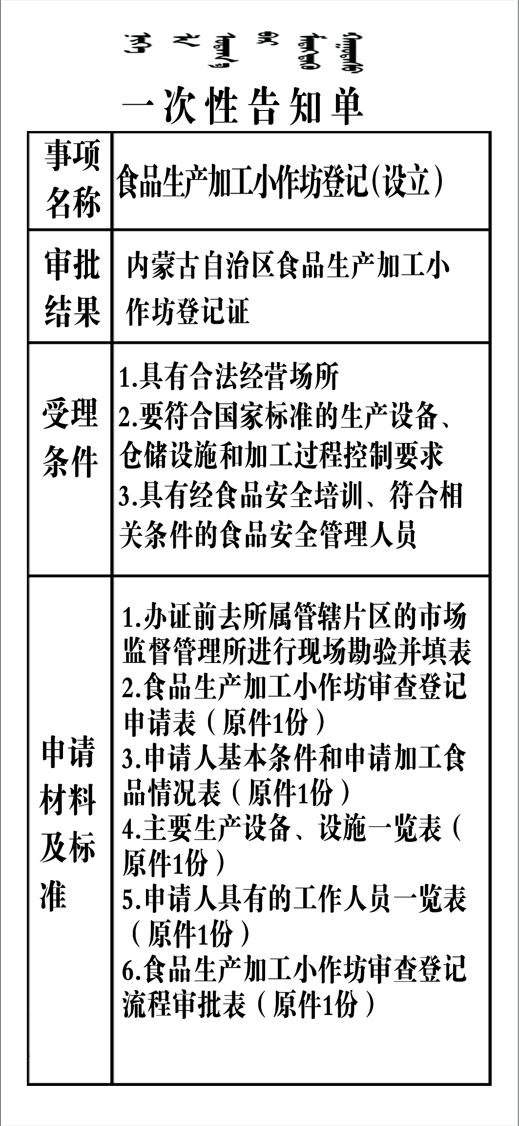 食品生产加工小作坊登记(设立)