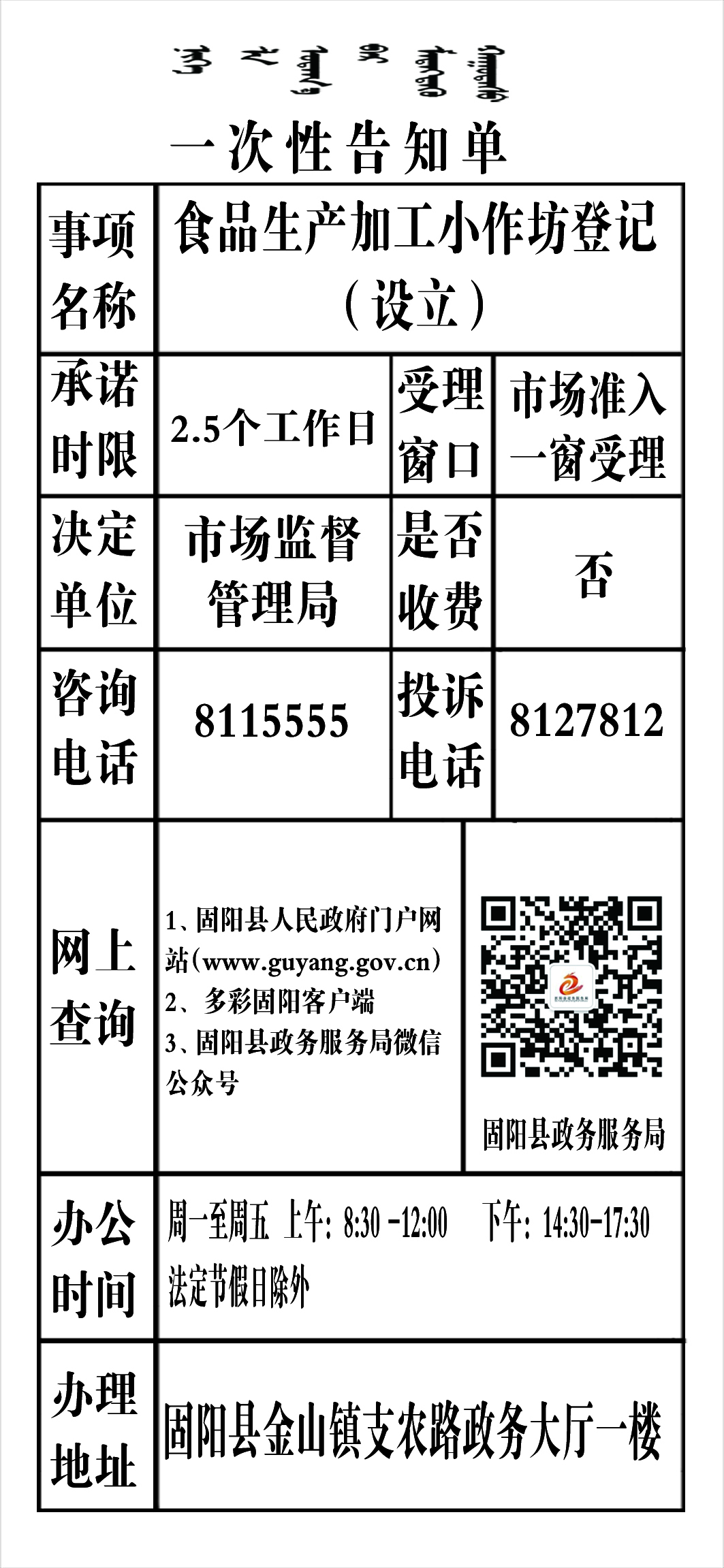 政务服务事项告知单