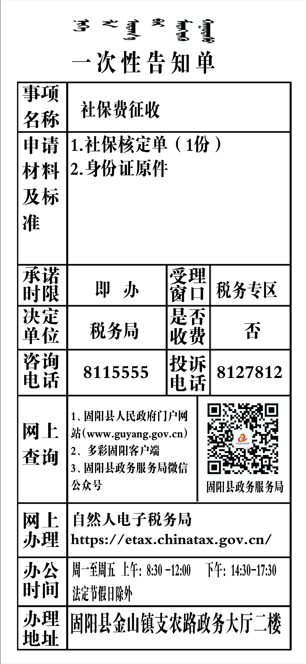 政务服务事项告知单