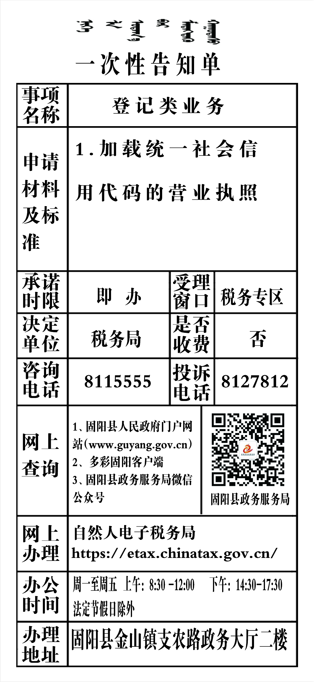 政务服务事项告知单