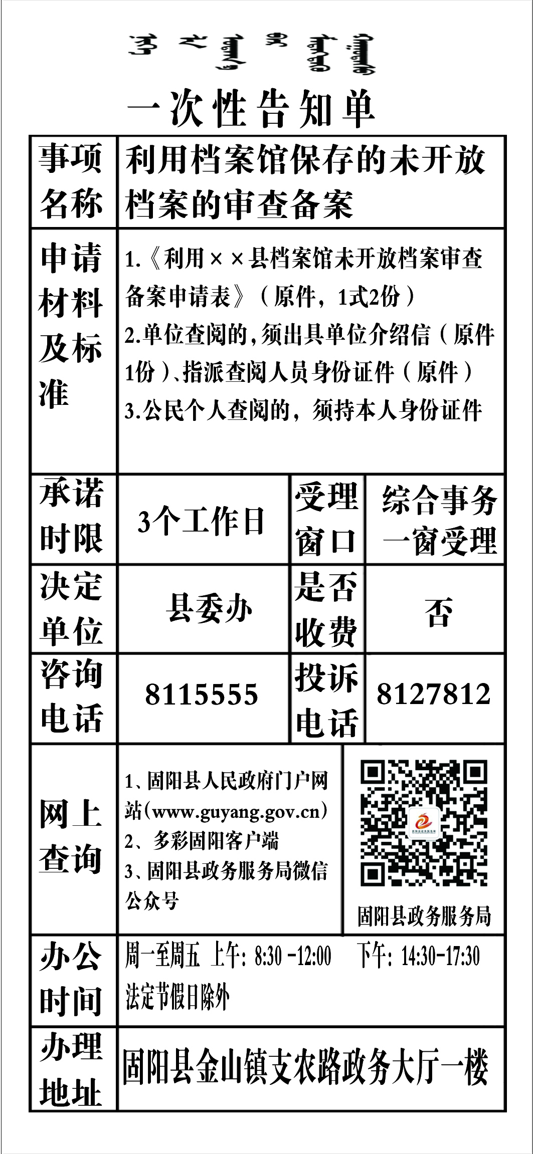 政务服务事项告知单