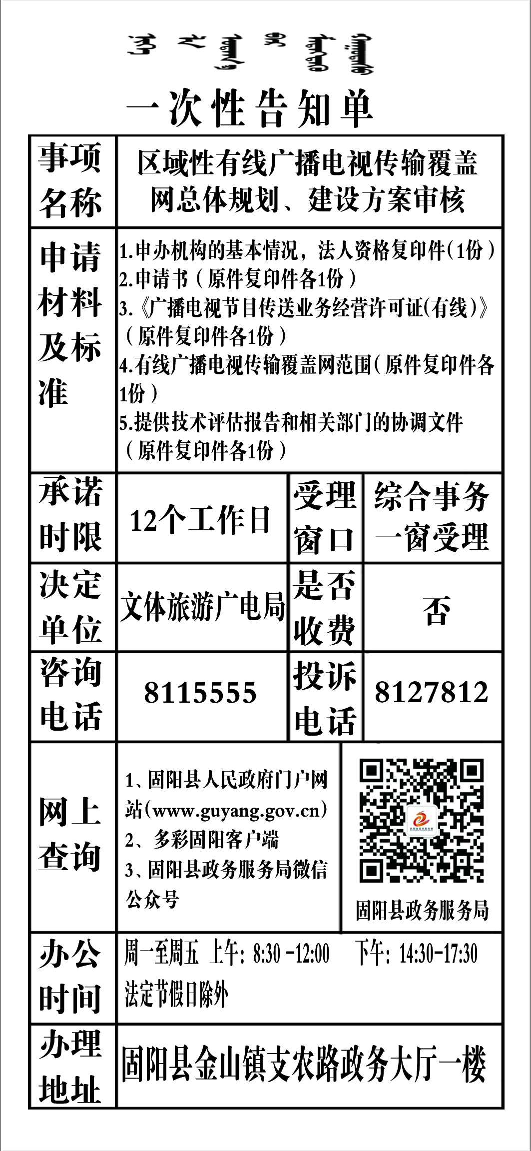 政务服务事项告知单