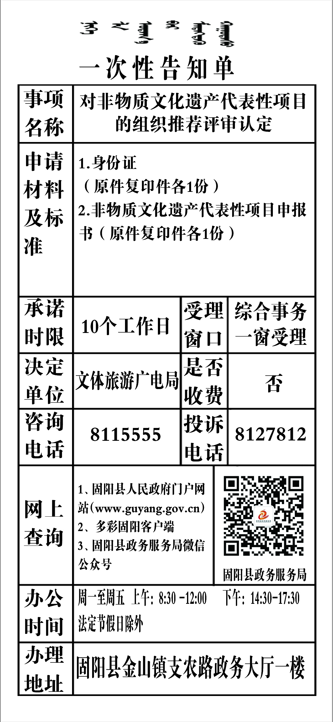 政务服务事项告知单
