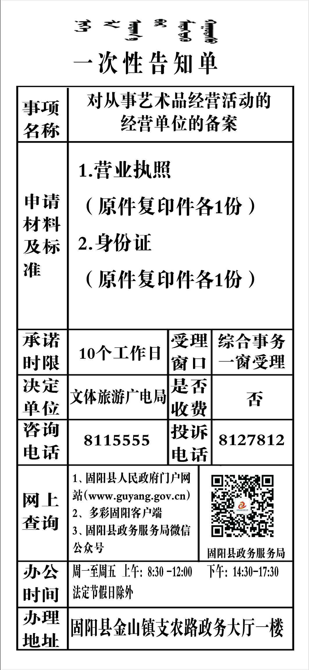 政务服务事项告知单