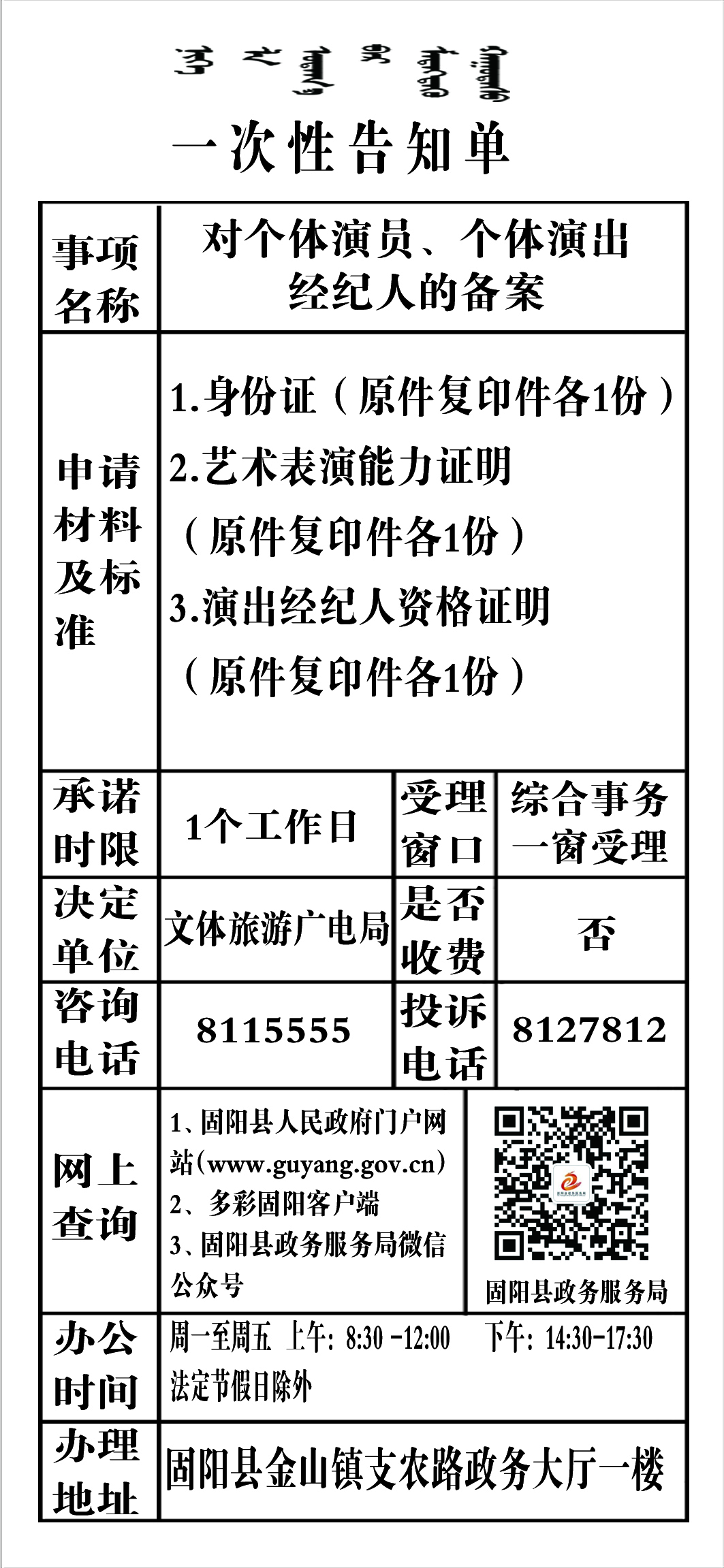政务服务事项告知单