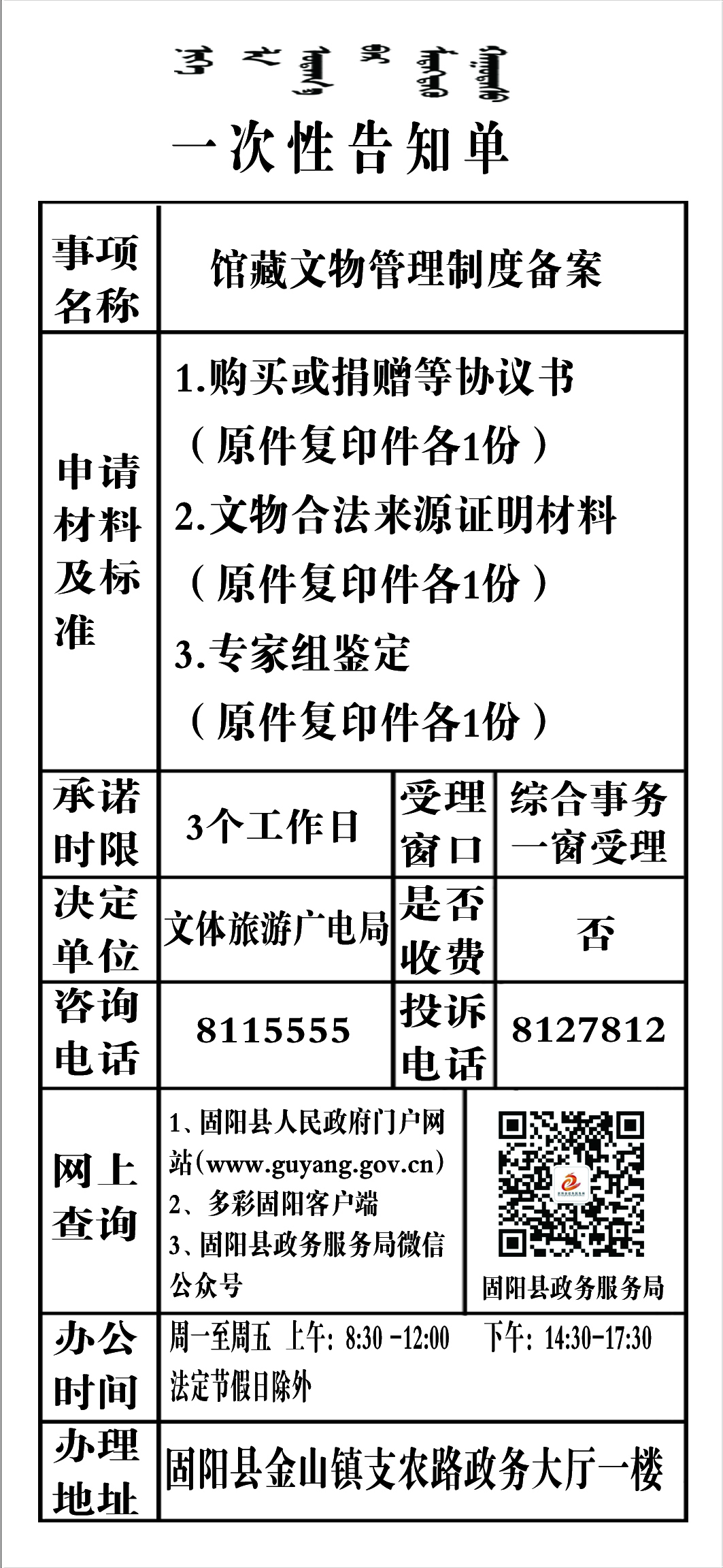 政务服务事项告知单