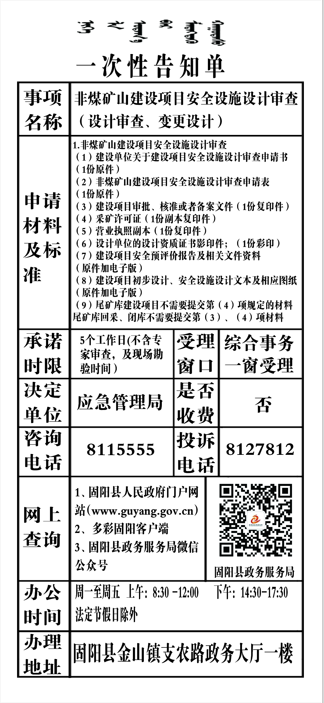 政务服务事项告知单