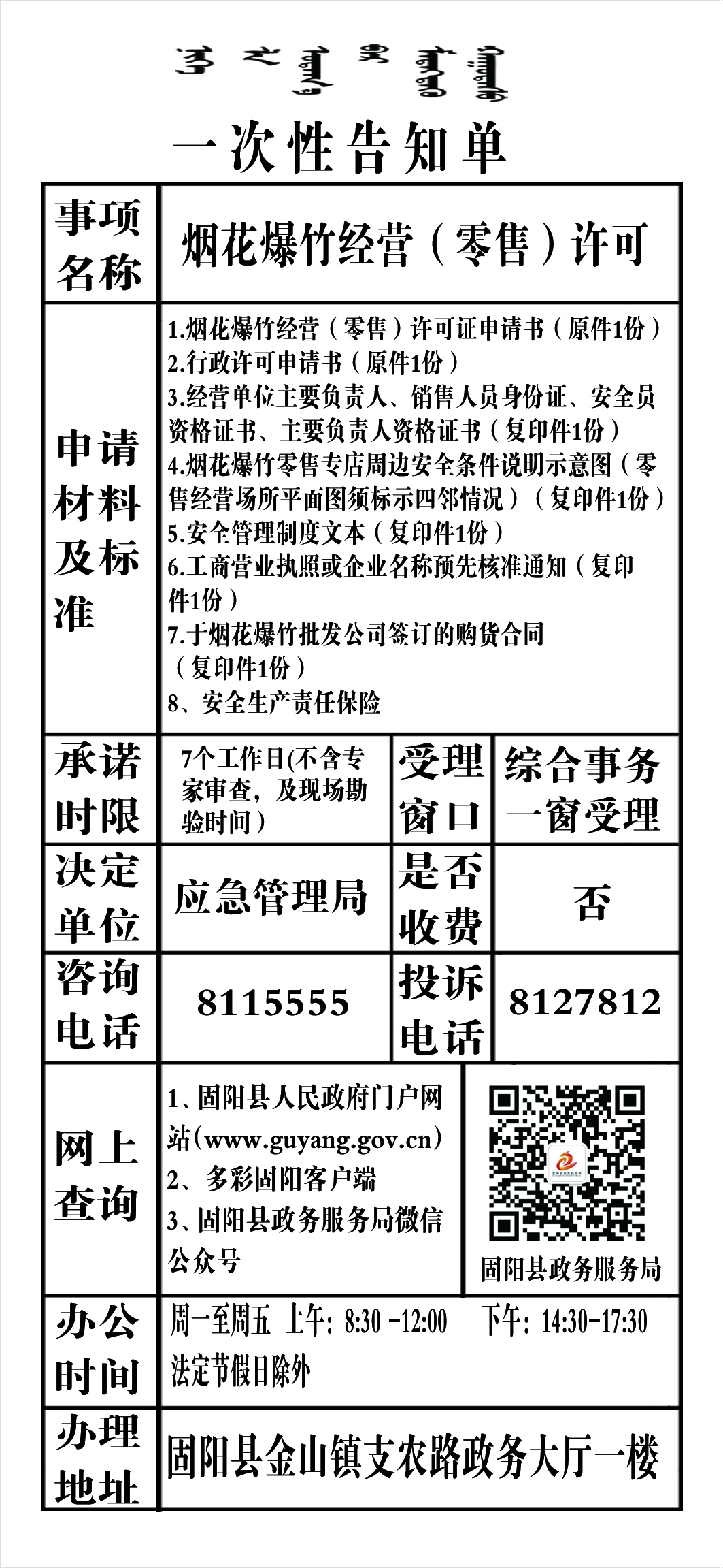 政务服务事项告知单