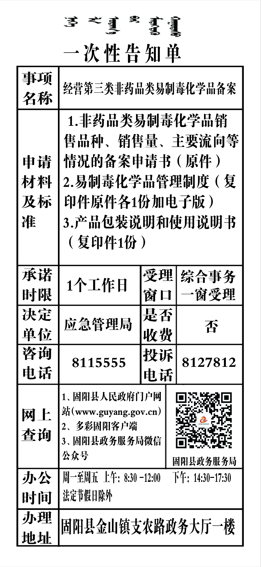 政务服务事项告知单