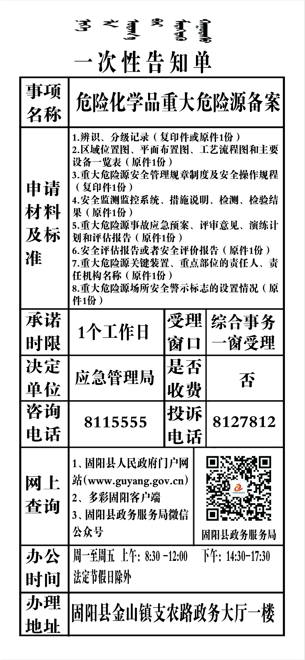 政务服务事项告知单