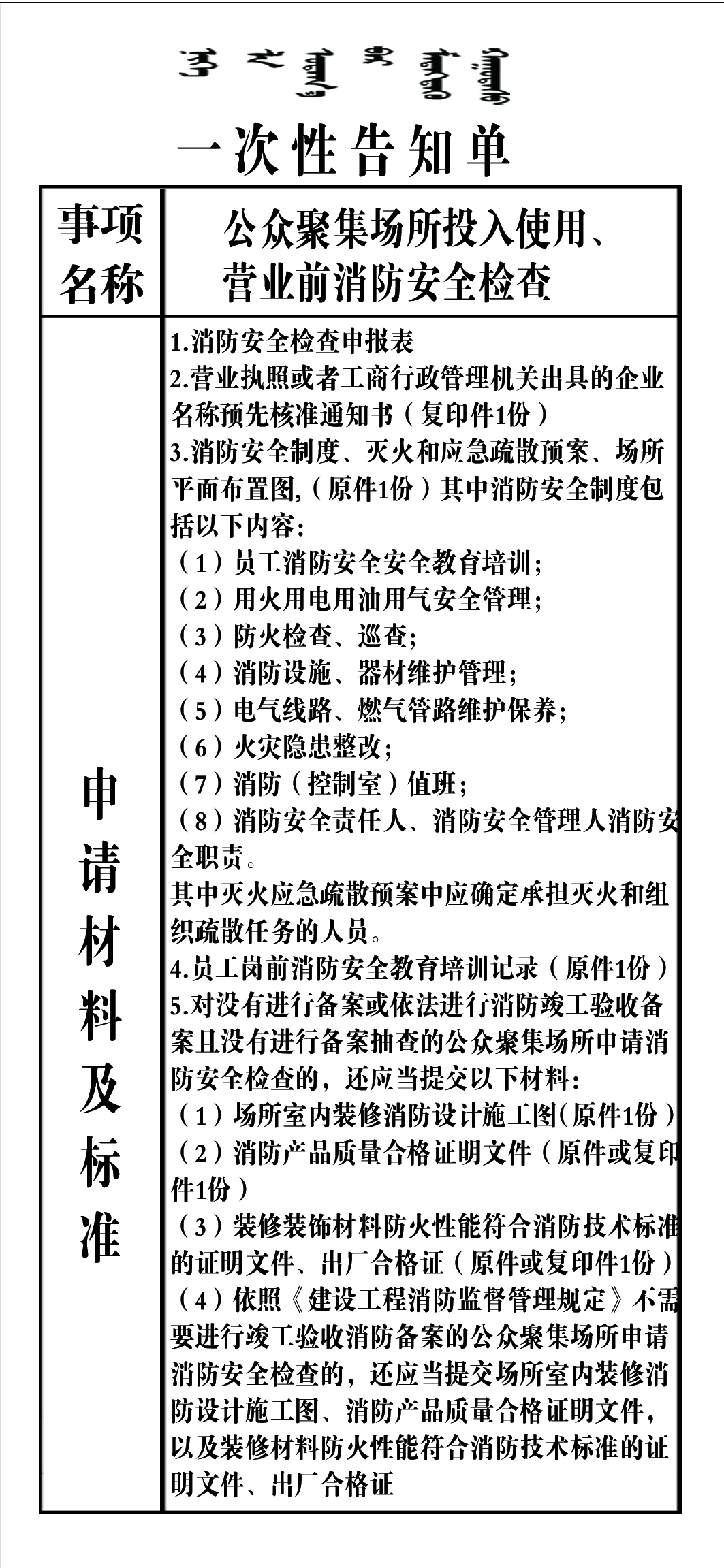 公众聚集场所投入使用、营业前消防安全检查